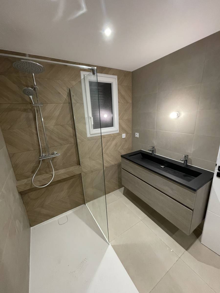 Nous avons eu le plaisir de réaliser une salle de bain complète dans le cadre d’une rénovation de maison située à Saint-Sorlin-en-Bugey (01150).